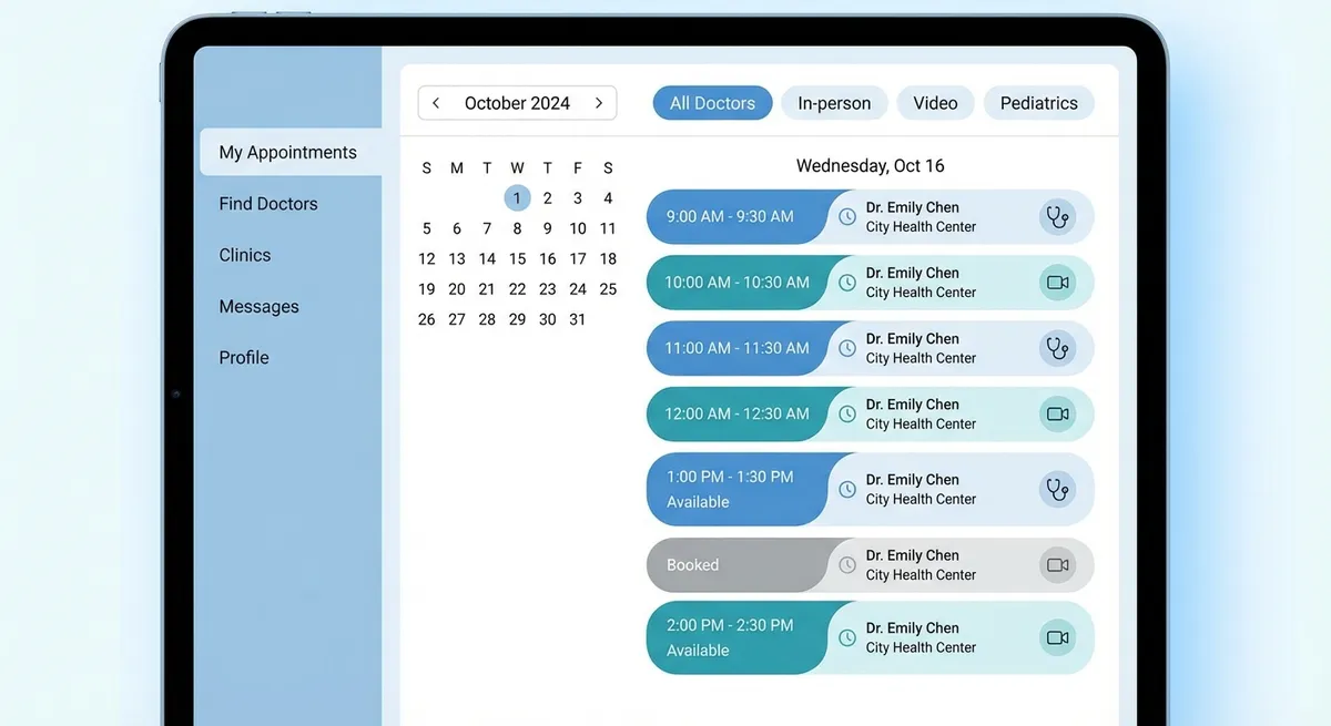 Die Buchung sollte optisch und funktional zur Praxis-Website passen. Externe Tools in neuen Fenstern oder mit völlig anderem Design wirken unsicher und unprofessionell.